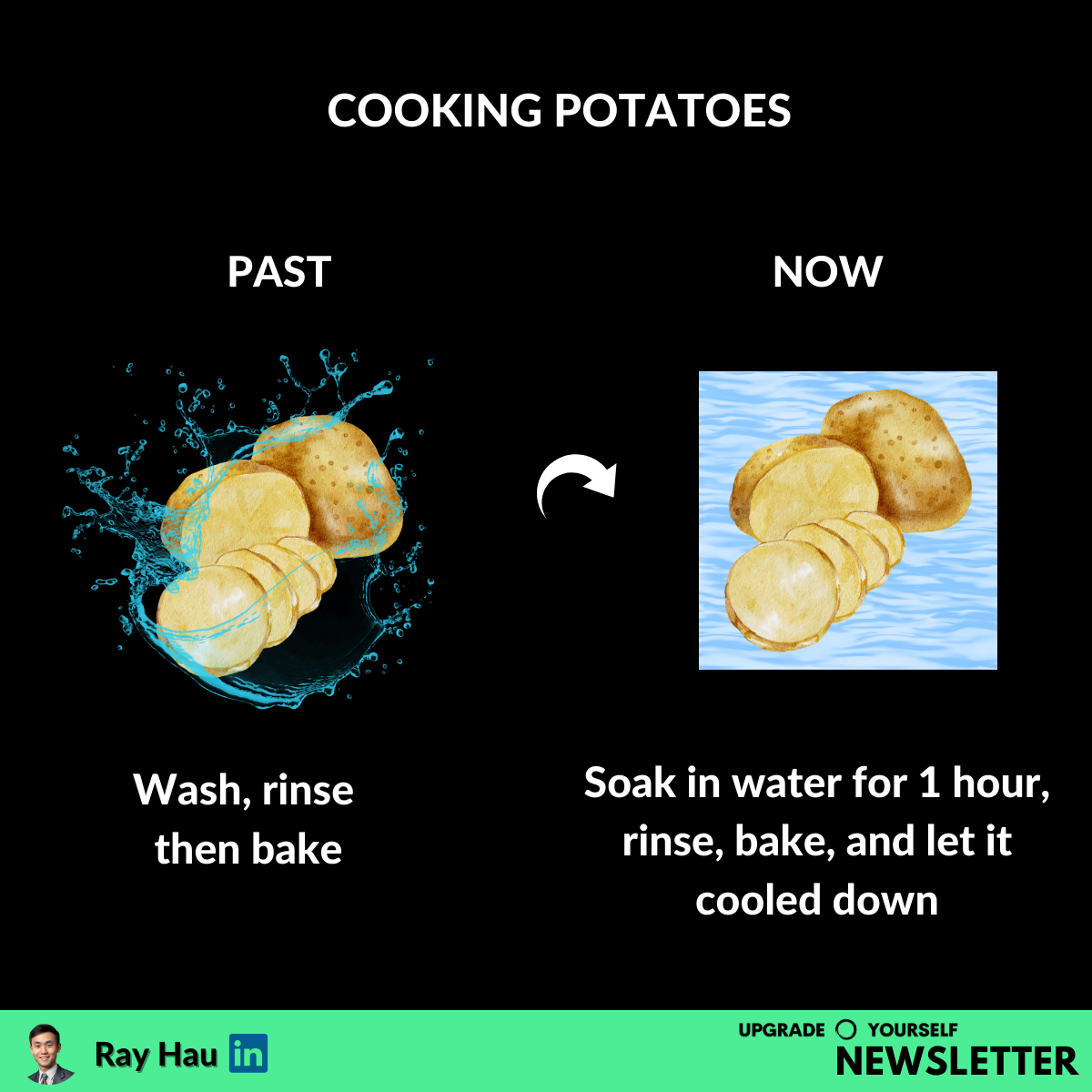 Soak white potatoes before cooking can reduce starch & lower the risk of cancer by minimising the harmful chemical, acrylamide.